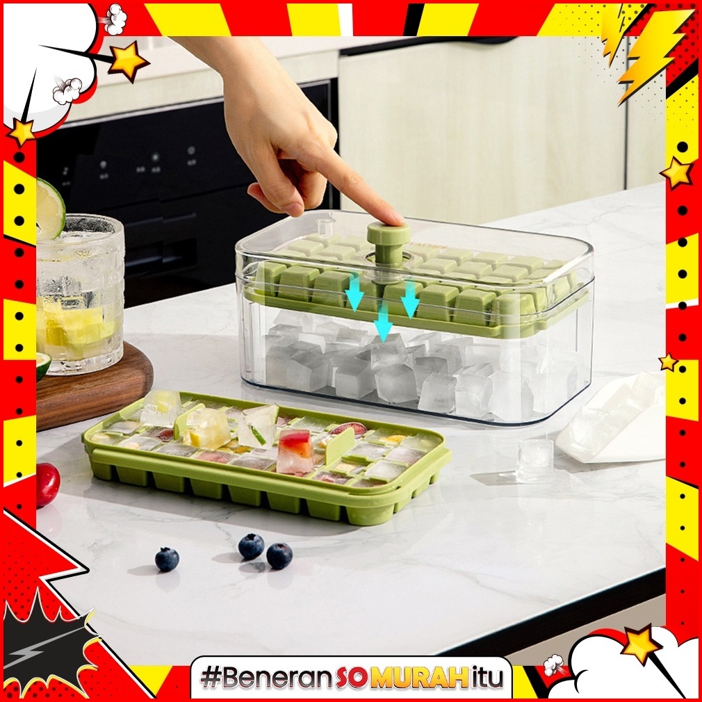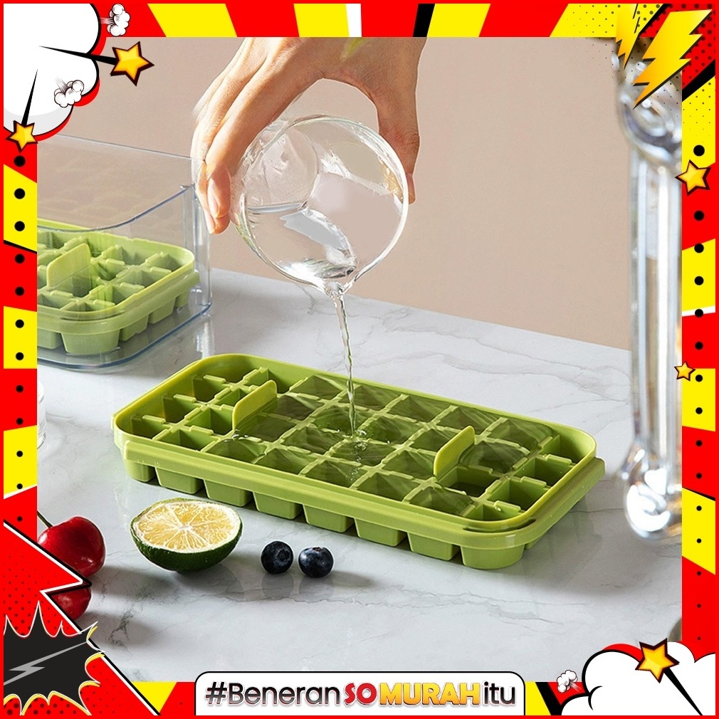Cetakan Es Batu 28 56 Grid 2 Tray Ice Cube Maker Dengan Press Handle Sekali Tekan Food Grade