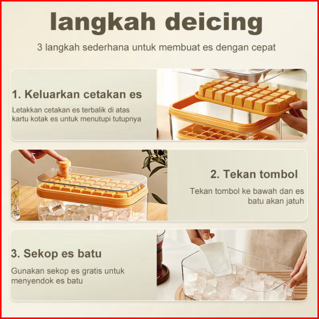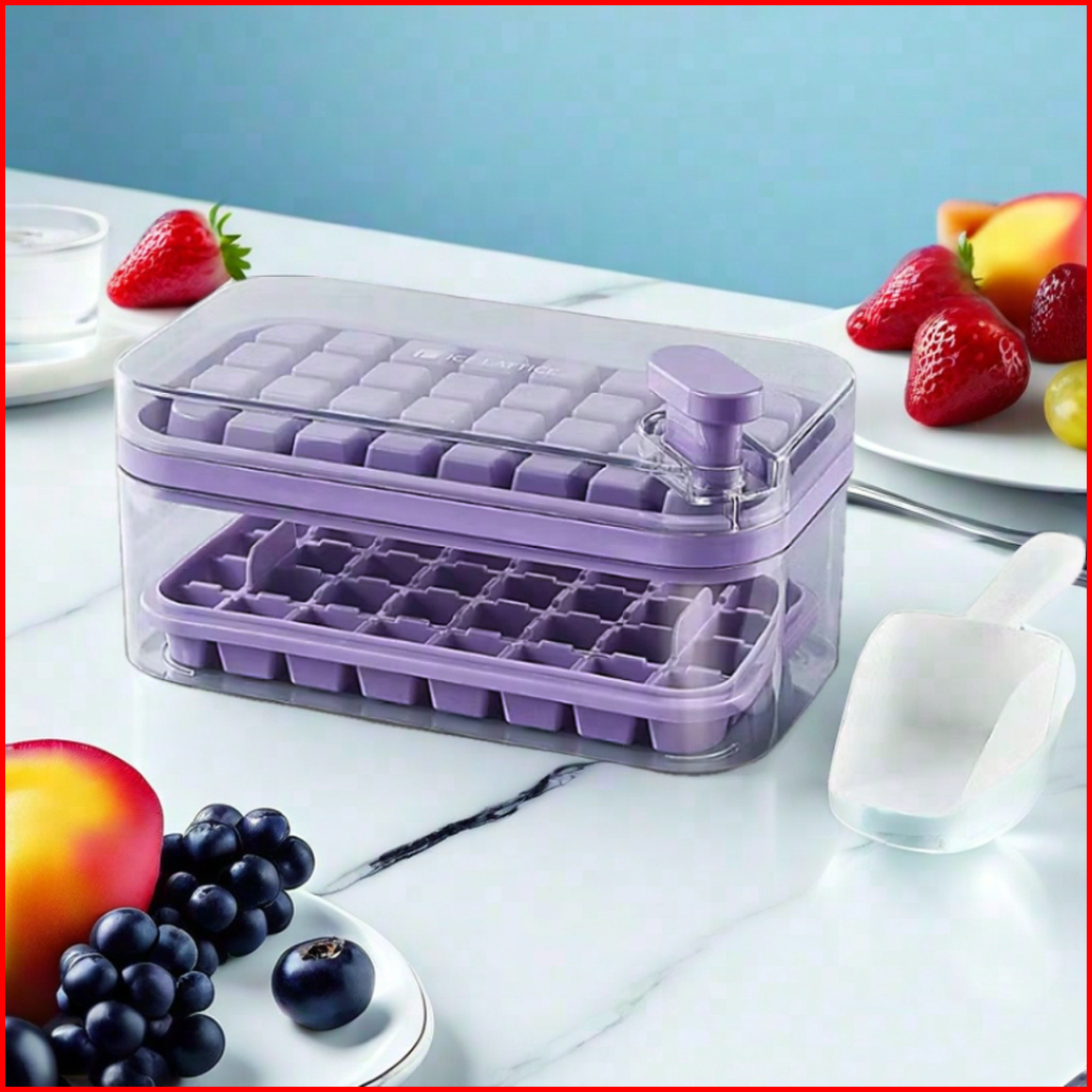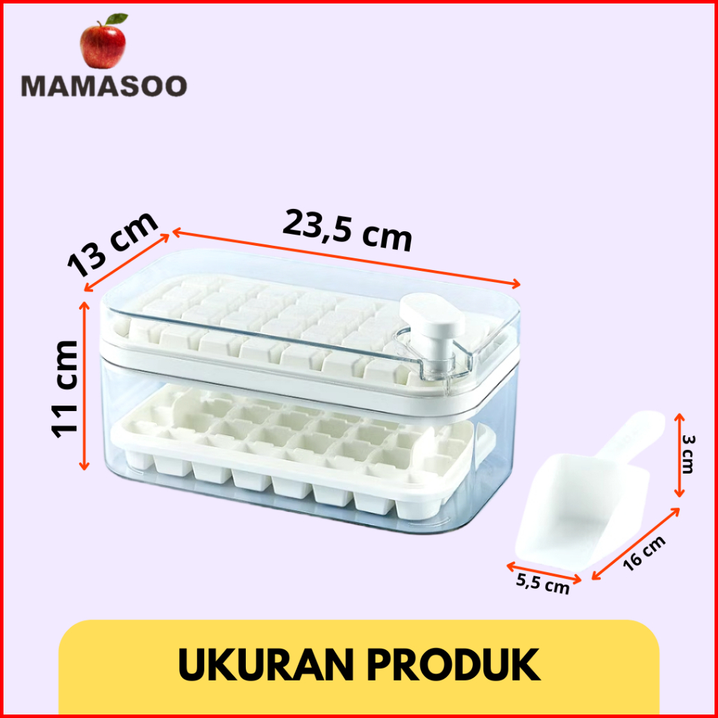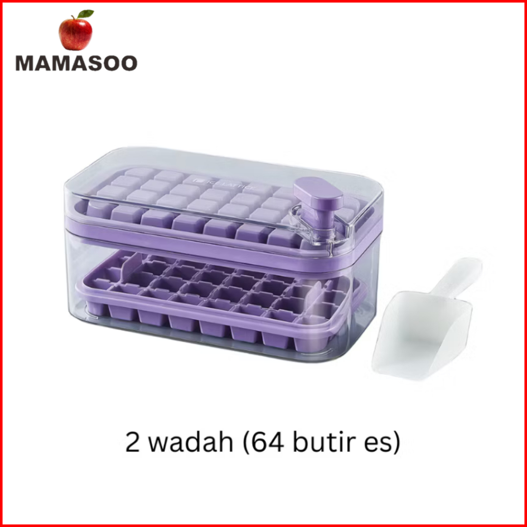Mamasoo Cetakan Es Batu 32 Grid 2 Tray Wadah Transparan Ice Cube Maker Dengan Press Handle Sekali Tekan Food Grade Free