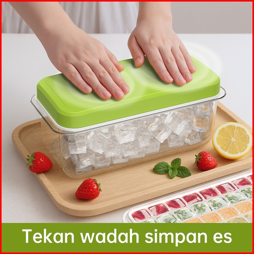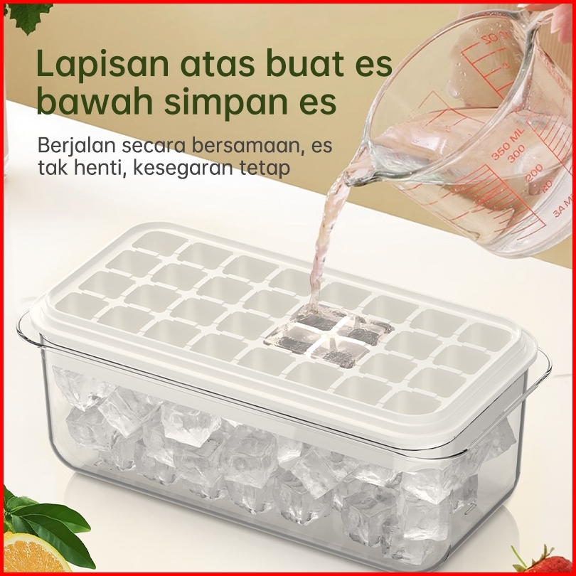 Xeso Home Cetakan Es Batu 32 Grid 2 Tray Wadah Transparan Ice Cube Maker Dengan Press Handle Sekali