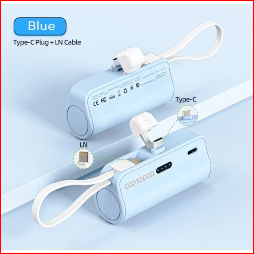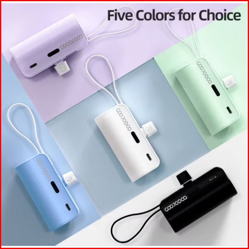 Goojodoq 4000mah Mini Powerbank For Iphone Android Phone Built In Cable Small