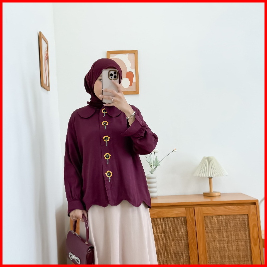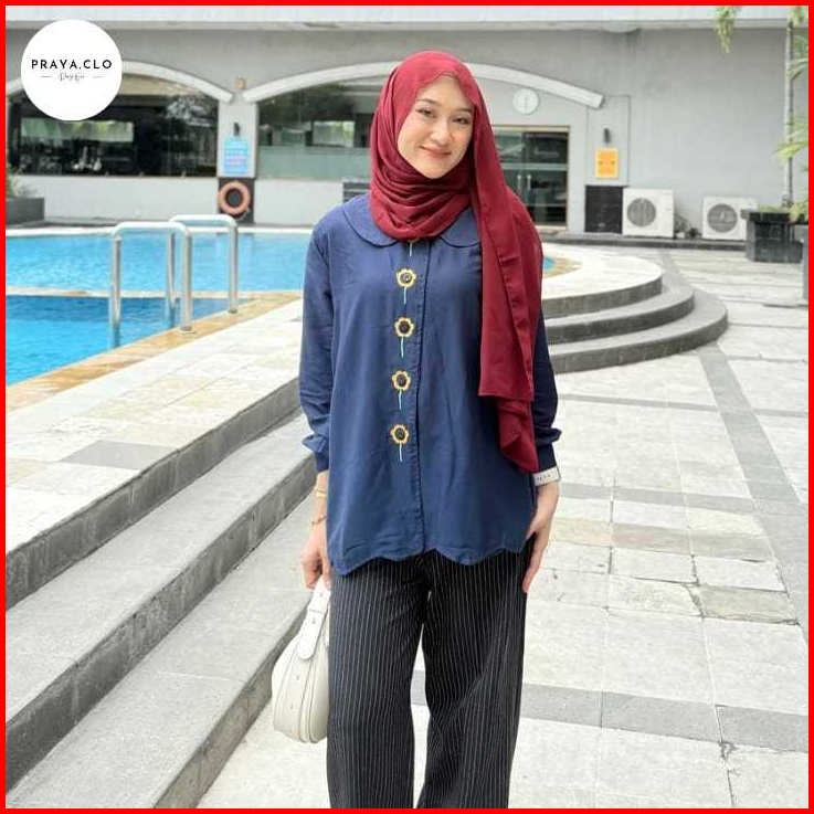 Praya.clo - Kinaya Blouse Bordir Rayon Twill Motif Bunga Korean Style
