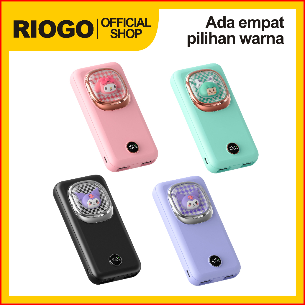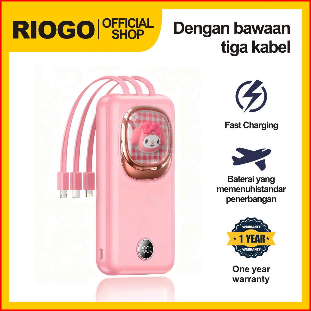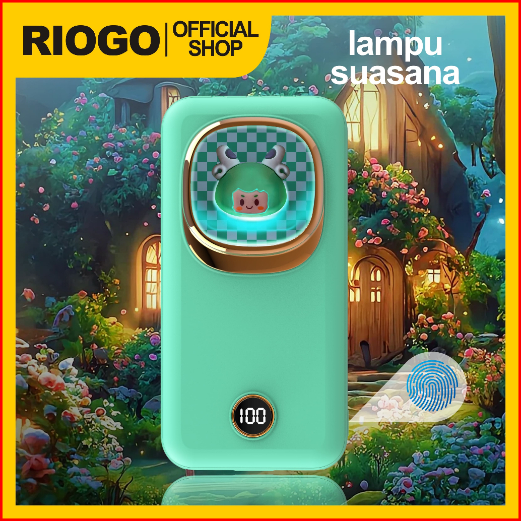 Riogo Model Terbaru Slim Power Bank 20000mah Fast Charge - Kabel Iphone Type C Lucu Dengan Lampu Pernapasan