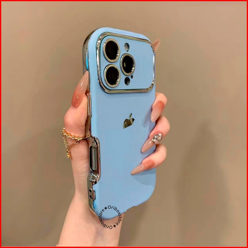 Berlogo - Leather Case Suede Silver Plating- Softcase Casing Hp Compatible For Iphone 11 12 13 14 15 16 17 17air Pro Plu