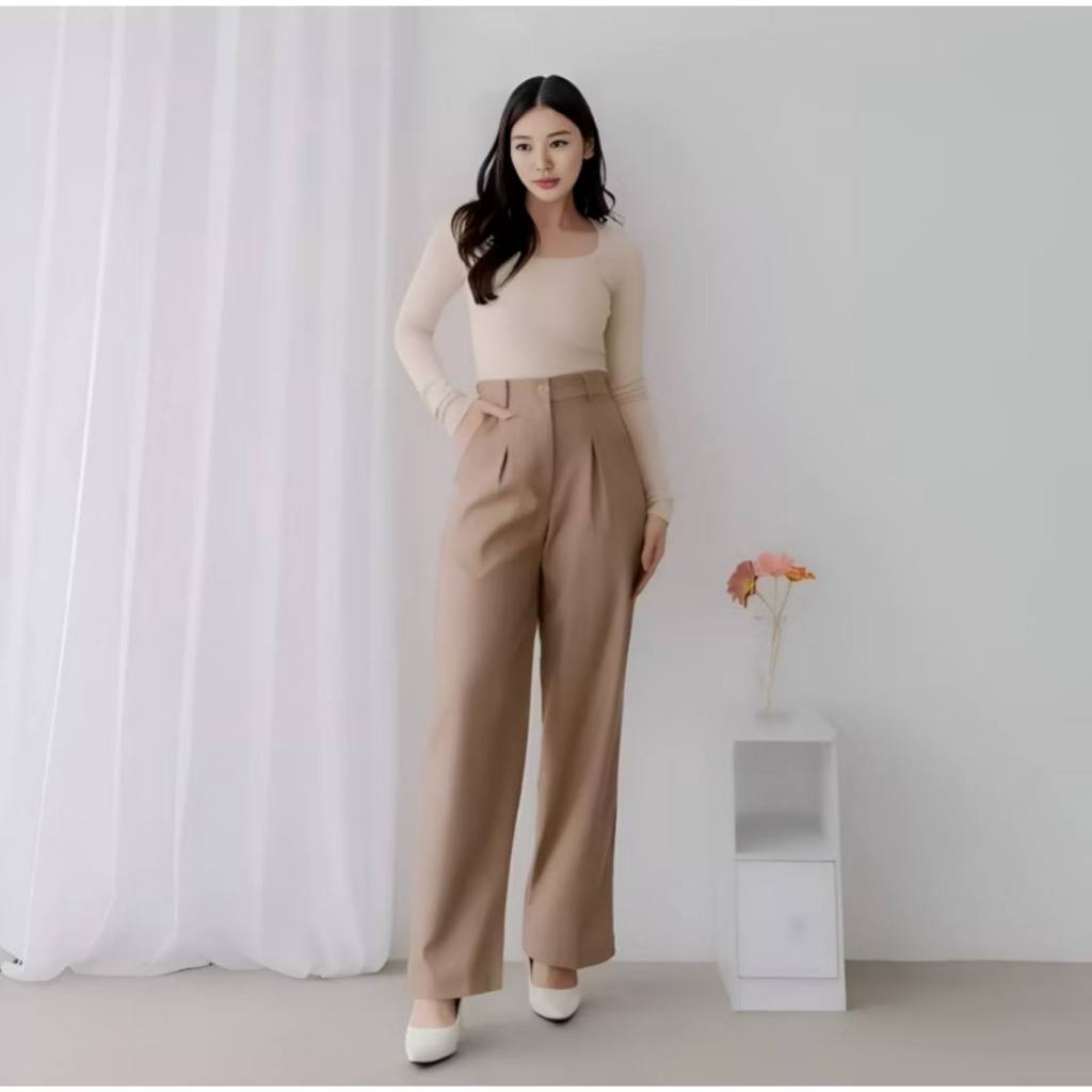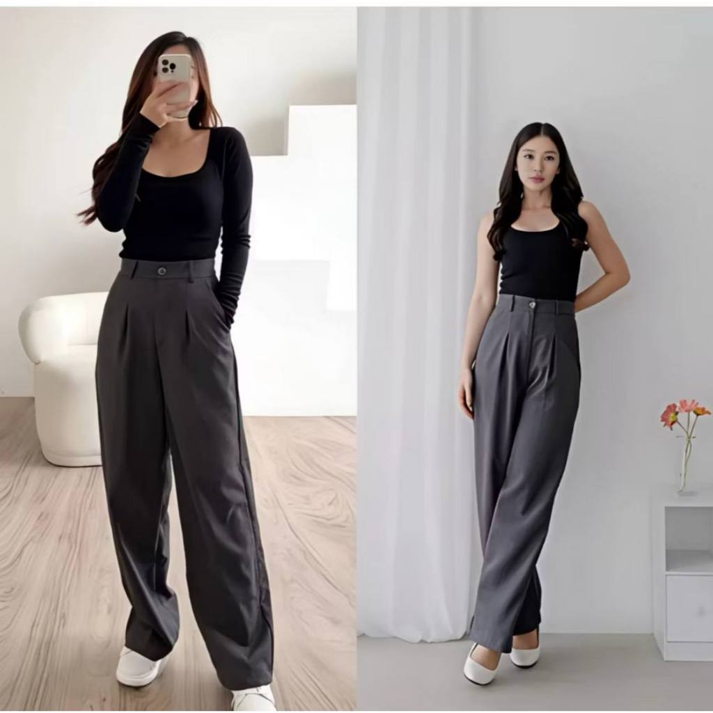 Zs - Viona Pants - Celana Kulot Wanita - Celana Anti Kusut - Highwaist Celana Kerja Kantor Casual Loose Pants Trouser Pr