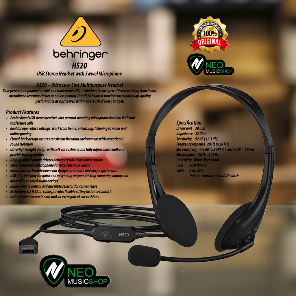 Behringer HS20 USB Stereo Headset with Swivel Microphone