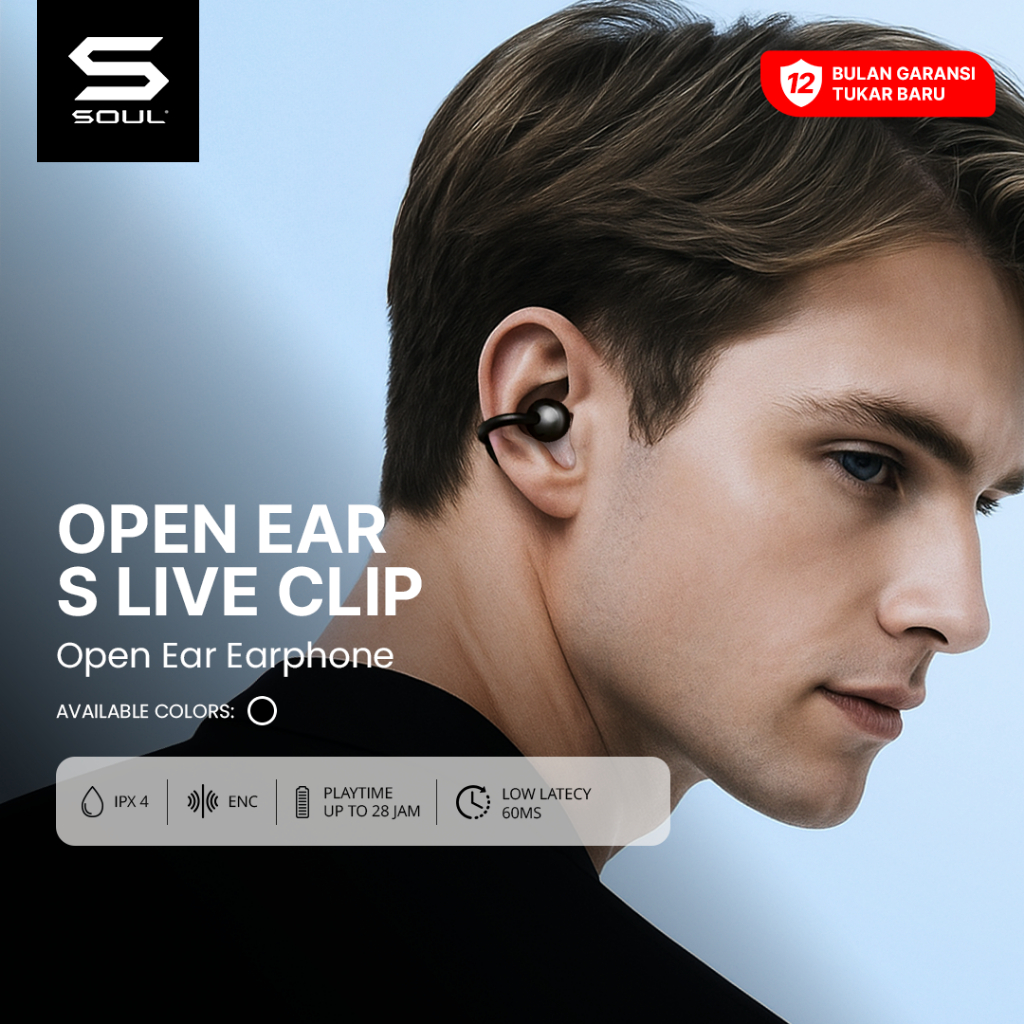 SOUL S Live Clip Open Ear Earphone Low Latency ENC IPX4 Anti Keringat