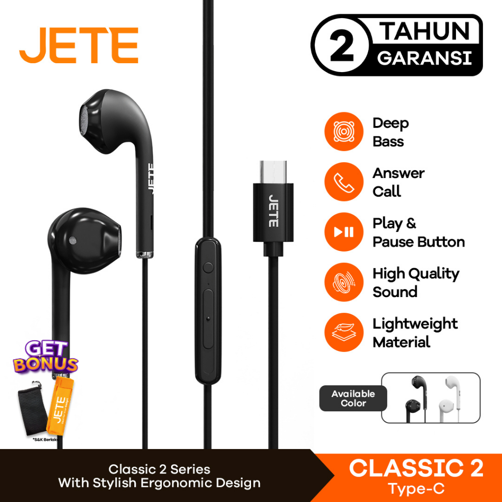 Headset Earphone Type C JETE Classic 2 with Microphone - Garansi 2 Tahun