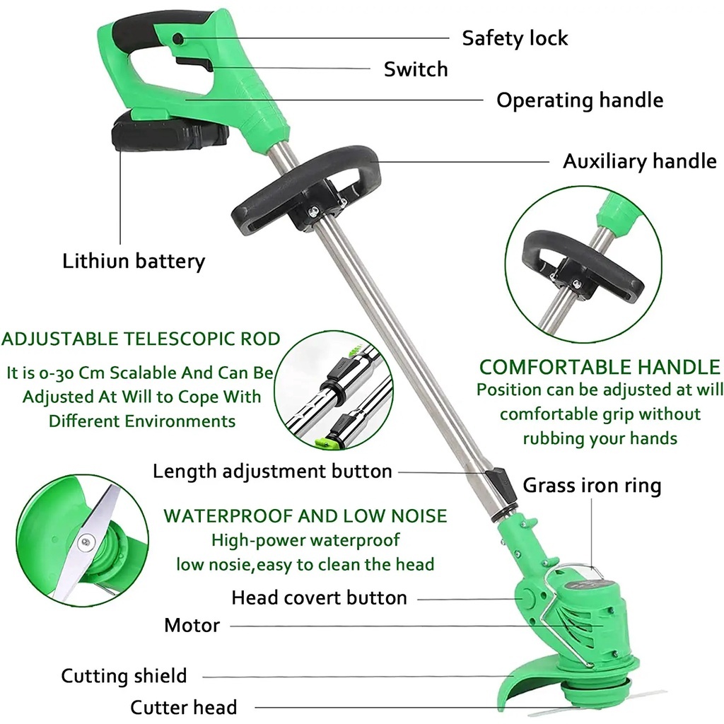 IRONHOOF Mesin potong rumput 588V Mesin pemotong rumput Pemangkas Rumput dengan Baterai Li-ion