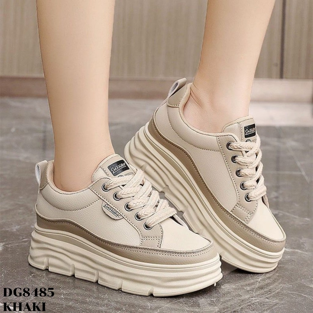 PRF Sepatu Sneakers Wedges Tinggi 5cm Sandal Fashion Korea Kekinian Black Blue Khaki Santai Casual DG8485