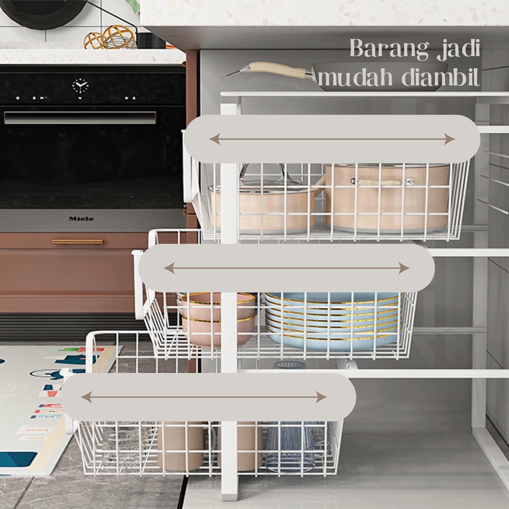 Rak Penyimpanan Organizer •Tec • Kori Rak Dapur Laci Serbaguna Rak Bawah Wastafel Perlengkapan Dapur Rak Kokoh Rak Laci