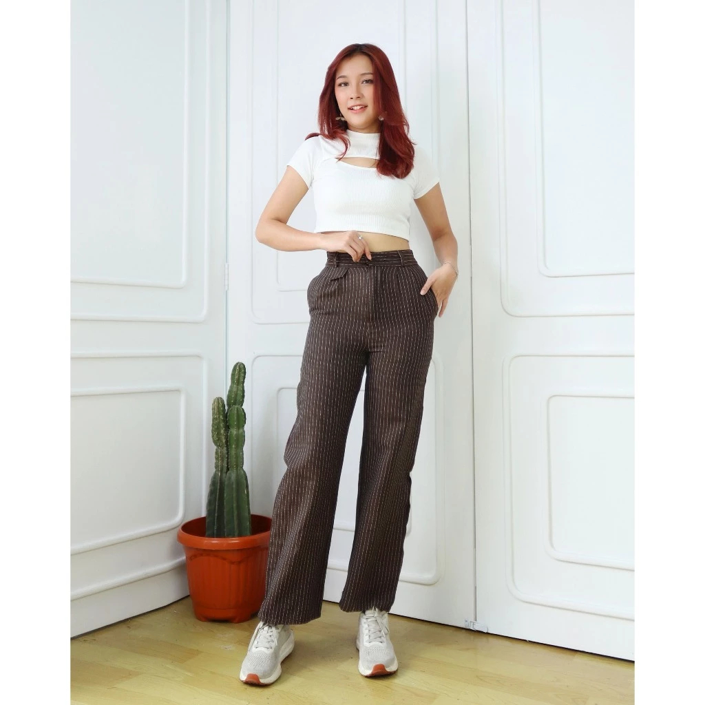 Oro Pants Stripe Bangkok - Celana Anti Kusut - Celana Panjang Korean Style - Celana Highwaist Wanita
