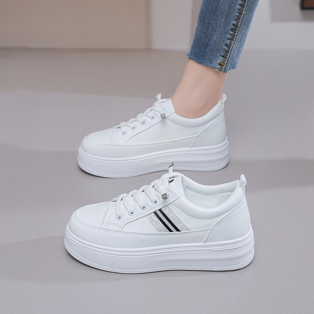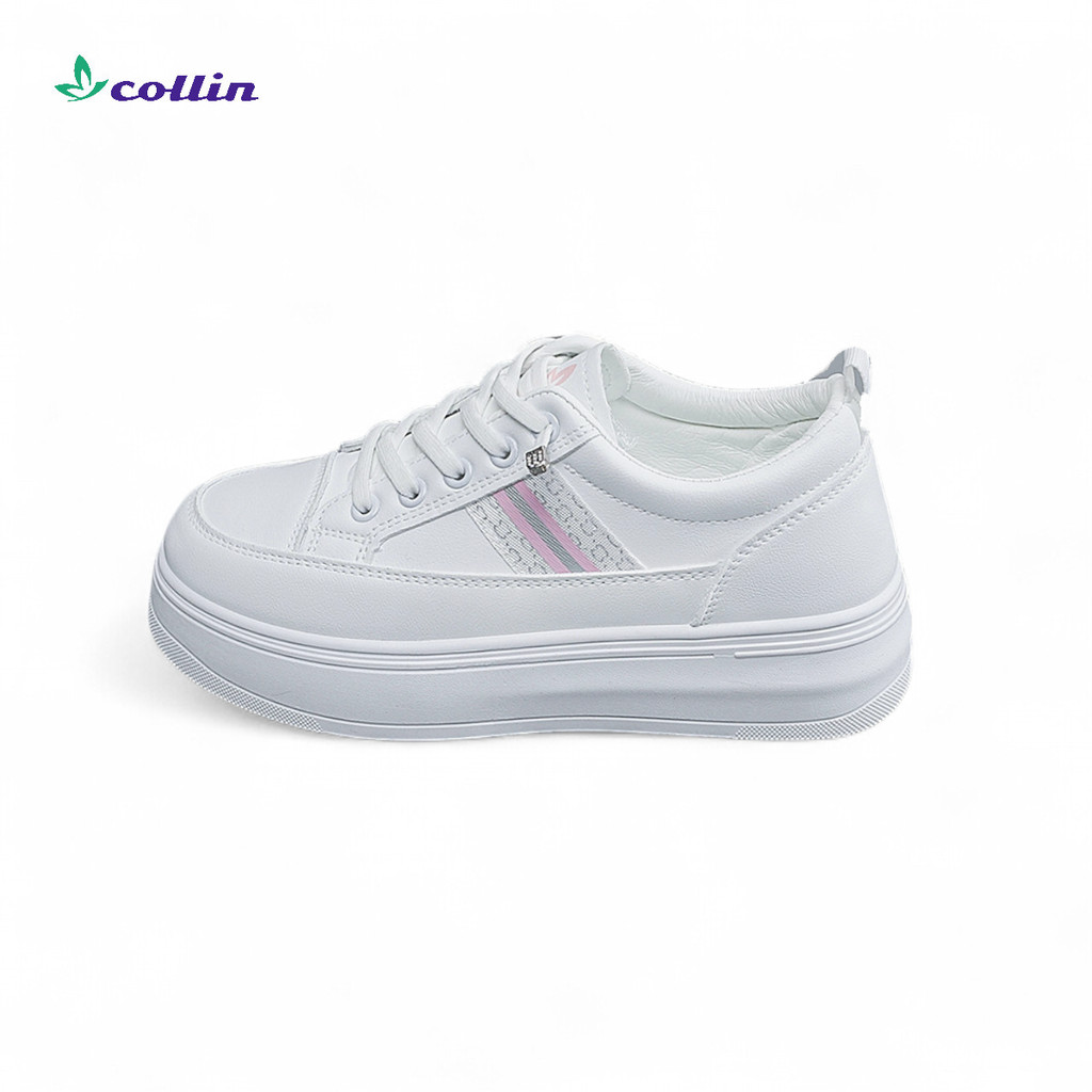 COLLIN Sepatu Sneakers Putih Wedges Wanita Dewasa Kets Cewek Kulit PU Leather Tali Mati COL2335