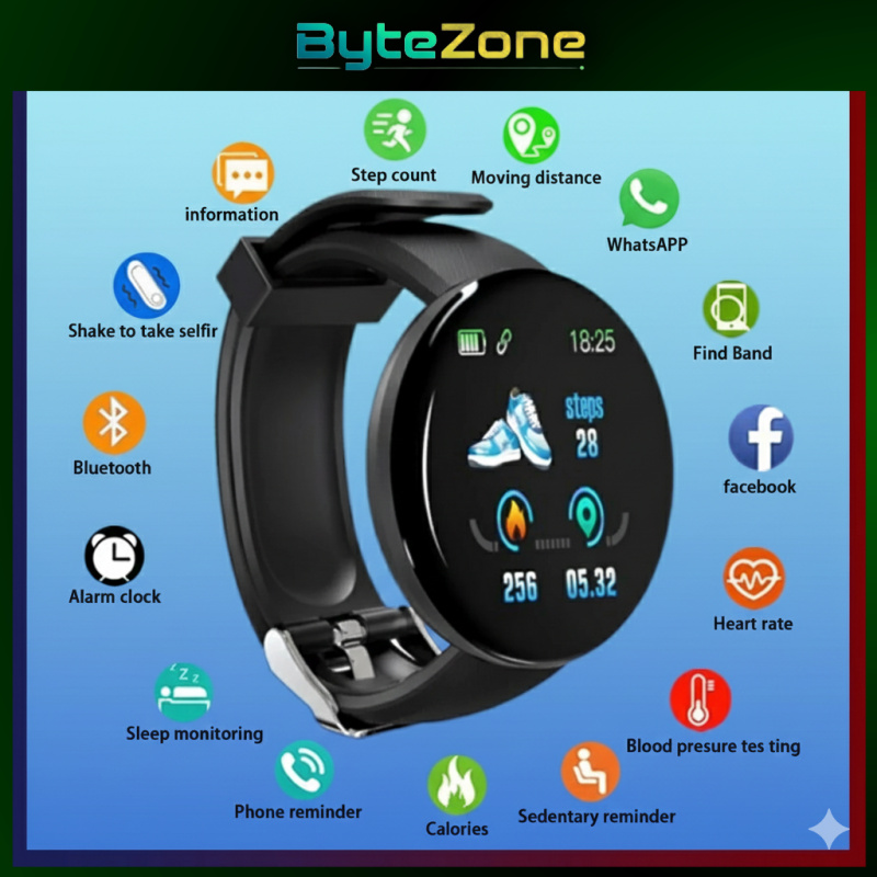 [Mall] Tesladi D18 | Smartwatch Olahraga Tahan Air, Bluetooth, Desain Unisex untuk Pria & Wanita, Layar Digital✨