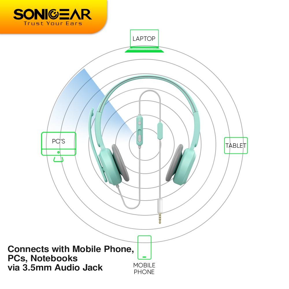 Headset Microphone Headphone SonicGear Xenon 3 untuk Office Sekolah Gaming | Portable Light Weight