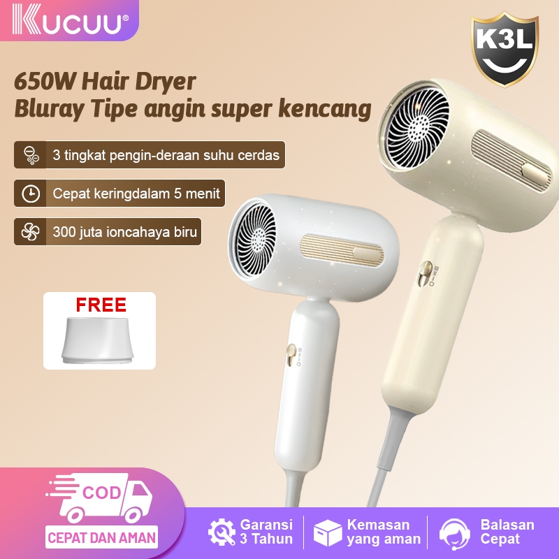 NEW KUCUU Hair Dryer Negative Ion Portable Low Watt 650w Pengering Rambut Hair Protection Quick Drying Bergaransi 1 Tahu