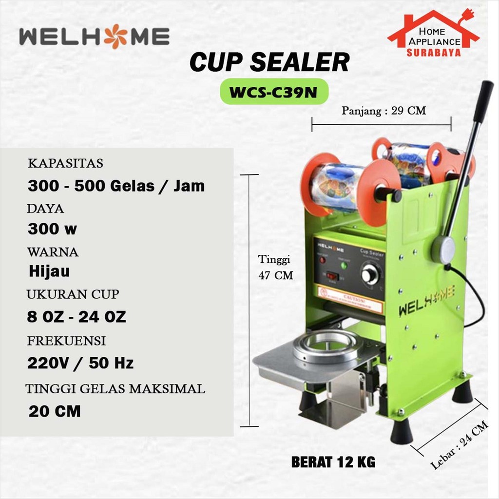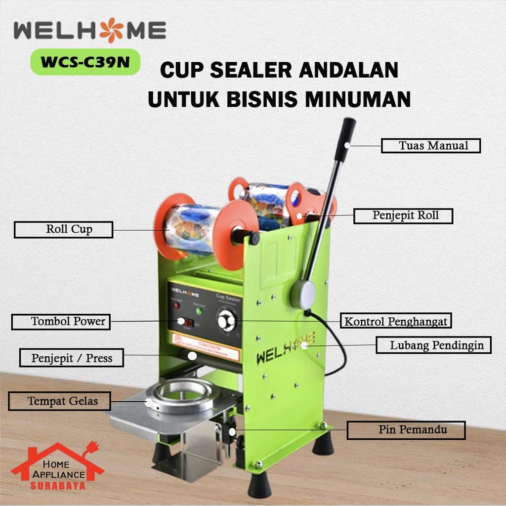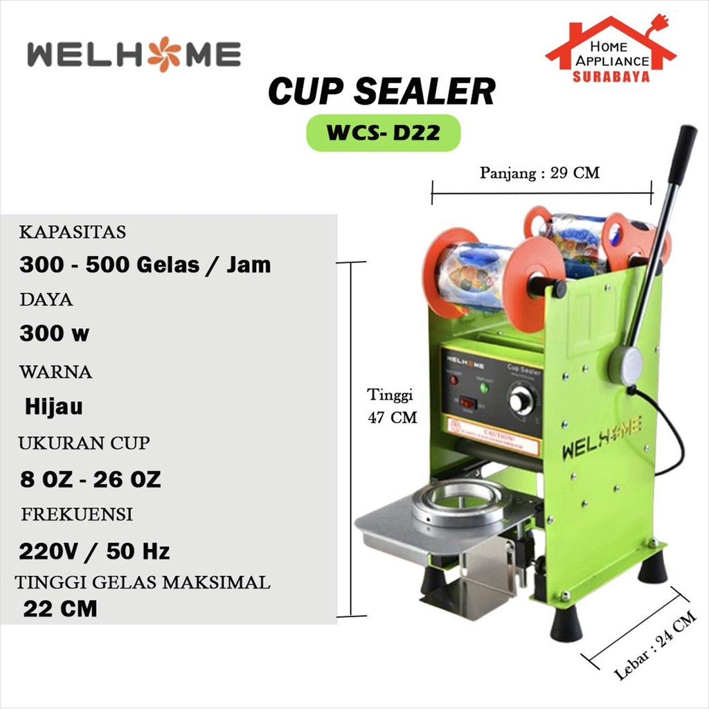 WELHOME Manual Cup Sealing Machine - Mesin Cup Sealer Press Gelas Plastik WCS-D22 / WCS-C37N / WCS-C39N
