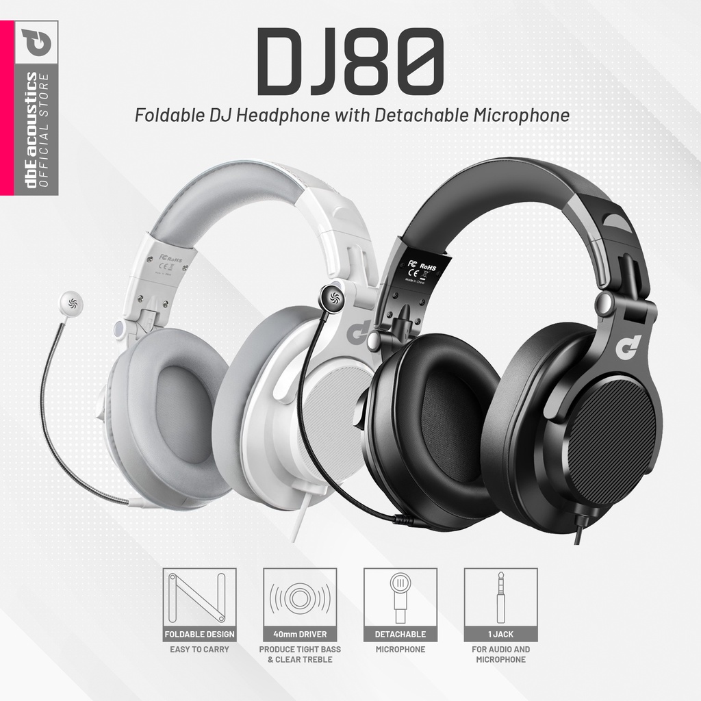 dbE DJ80 Foldable DJ Headphone with Detachable Microphone