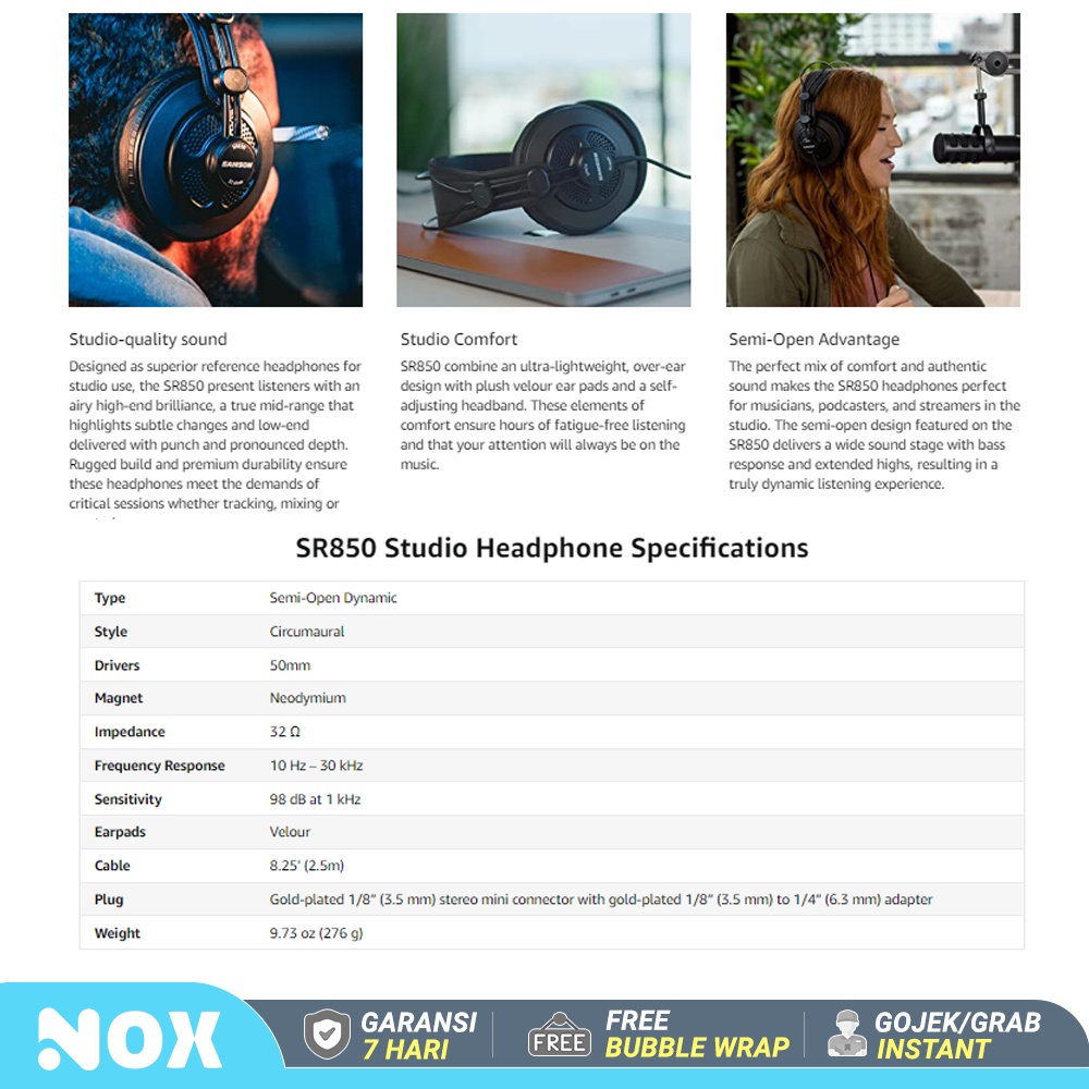 Headphone Samson SR850 professional studio rekaman Bass sound 3.5mm & 6.35mm audio Jack