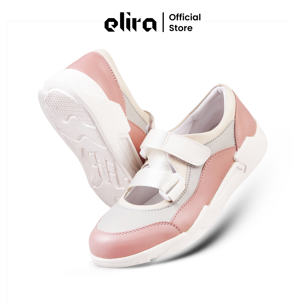ELIRA Sepatu Perekat Sneakers TIMI Pink Black Cream White Strap Shoes Women