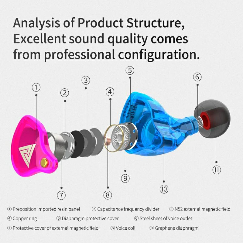 QKZ VK4 with Mic In Ear Earphone Colorful DD HIFI Bass Noise Cancelling