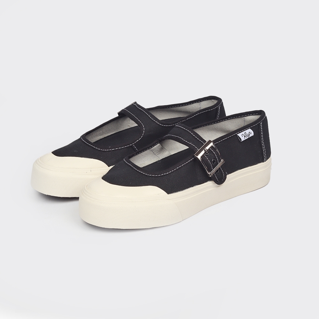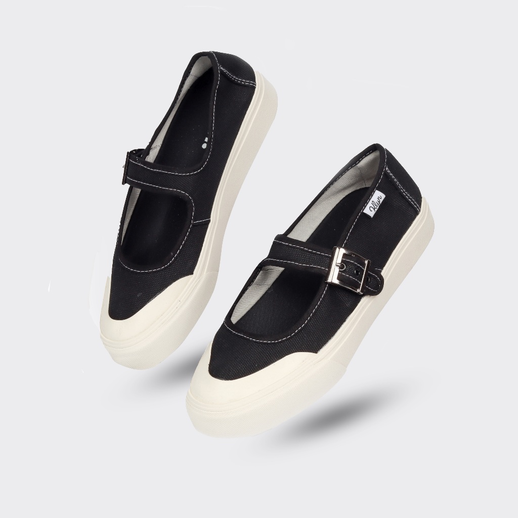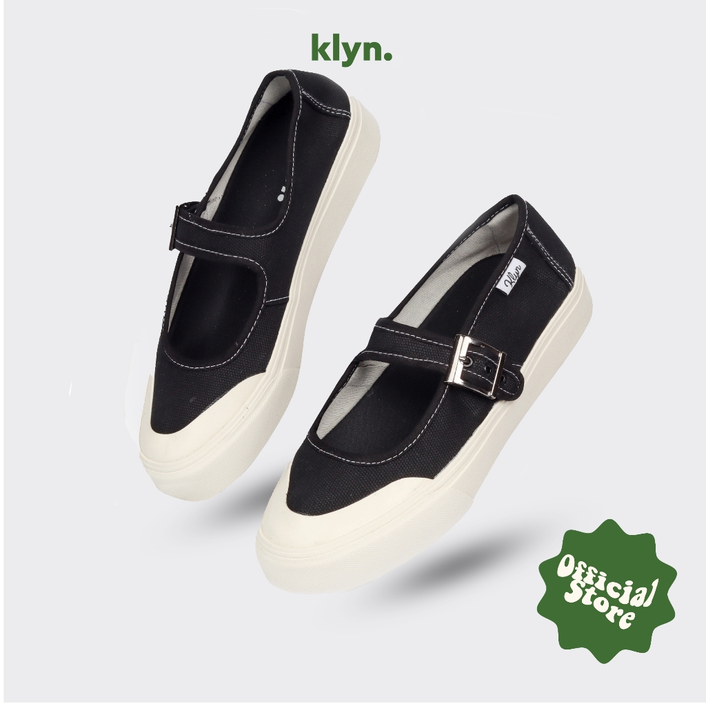 KLYN Lucy Sepatu Sneakers Mary Jane Kanvas Wanita Casual Sporty Hitam Putih