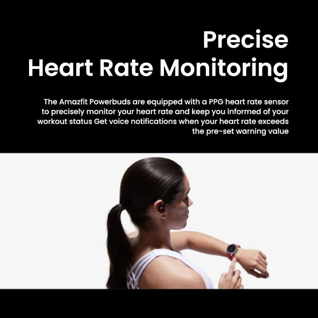 Amazfit PowerBuds True Wireless Bluetooth Earbuds in-Ear Headphones, Waterproof Earphones with Microphone, Heart Rate Monitoring, Noise Canceling