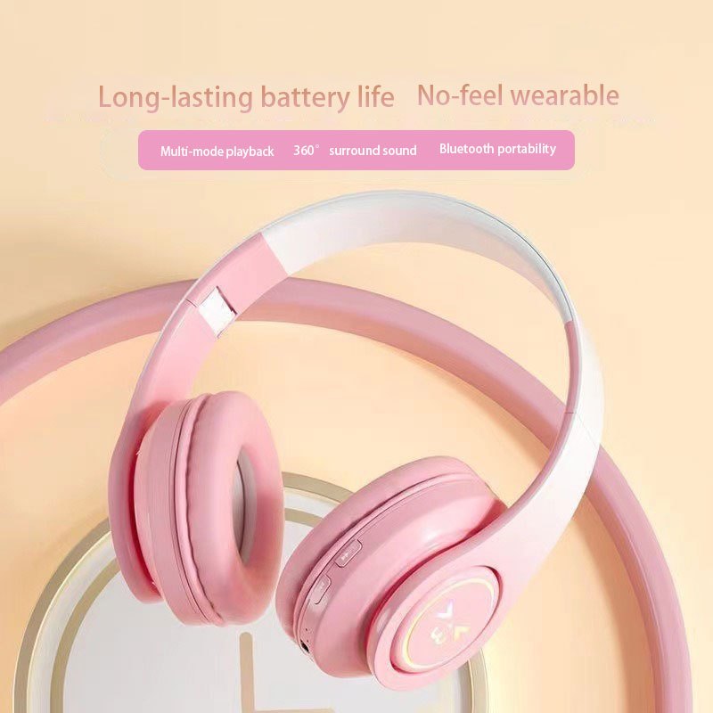 Headphone Bluetooth Wireless Headset Gradien Dapat Dilipat Lucu Permainan Stereo Bass Sound Mikropon Earphone