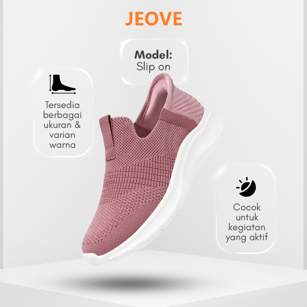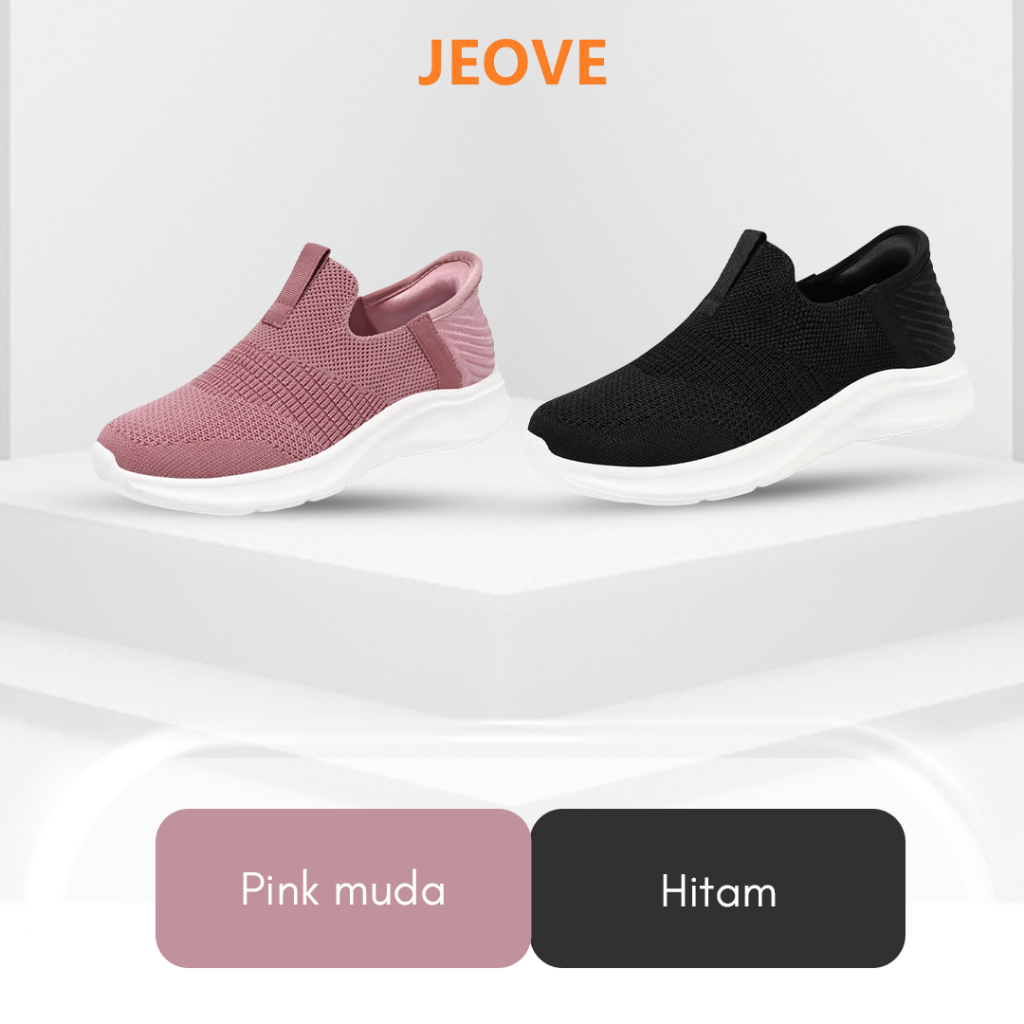 JEOVE Sneakers Shoes Sepatu Wanita Flyknit GYJ01 Model Slip On Ringan dan Nyaman Pink Black