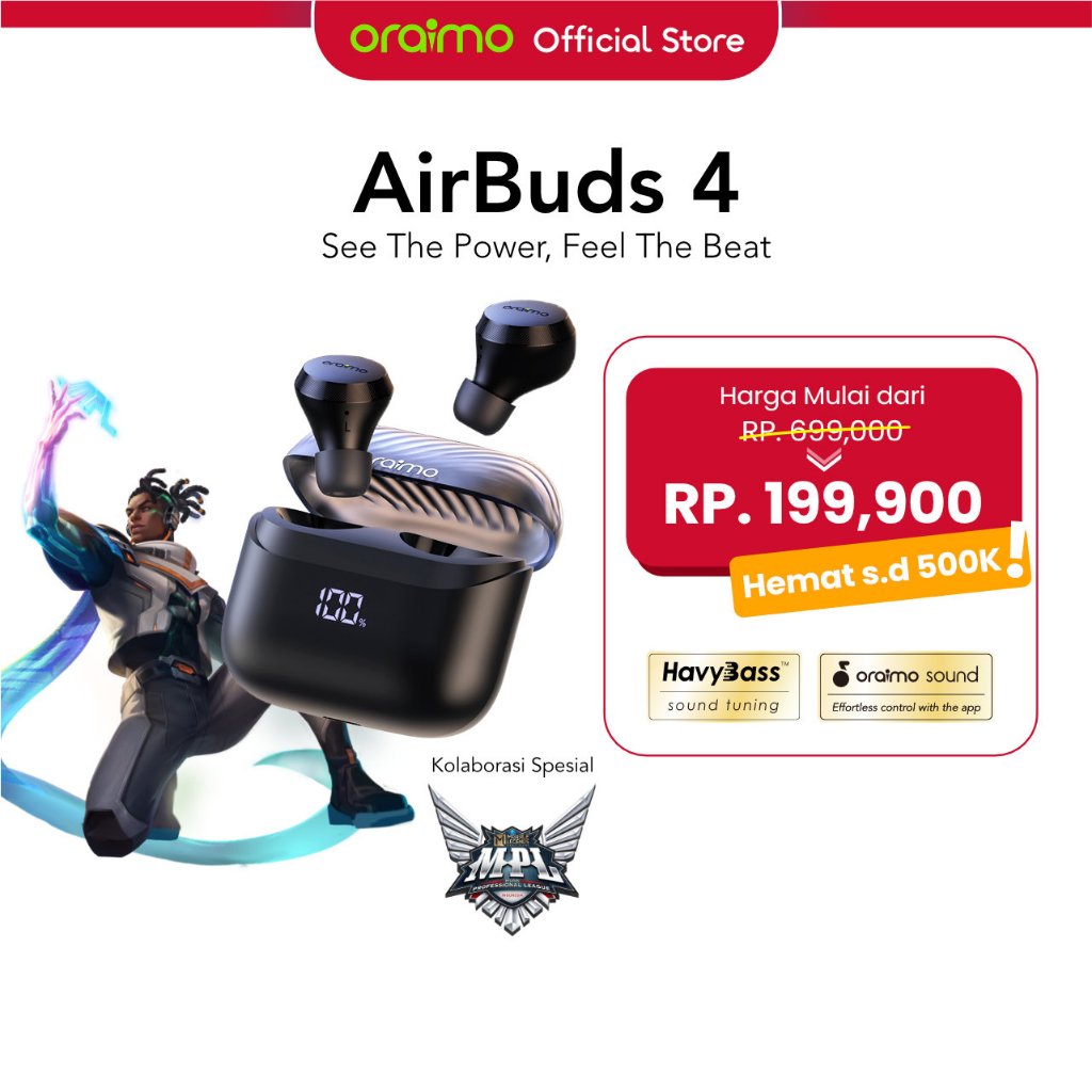 oraimo x MPL Mobile Legends TWS AirBuds 4 OTW-340MPL Edisi Kolaborasi Khusus Tampilan LED Stereo Nirkabel Sejati Bluetooth Gaming