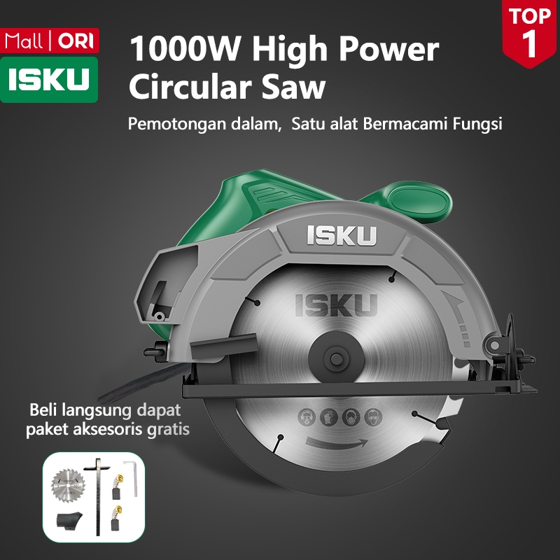 ISKU Gergaji Circular 1000W High Power Pemotong Kayu/Beton Baja Tahan Karat Garansi Resmi