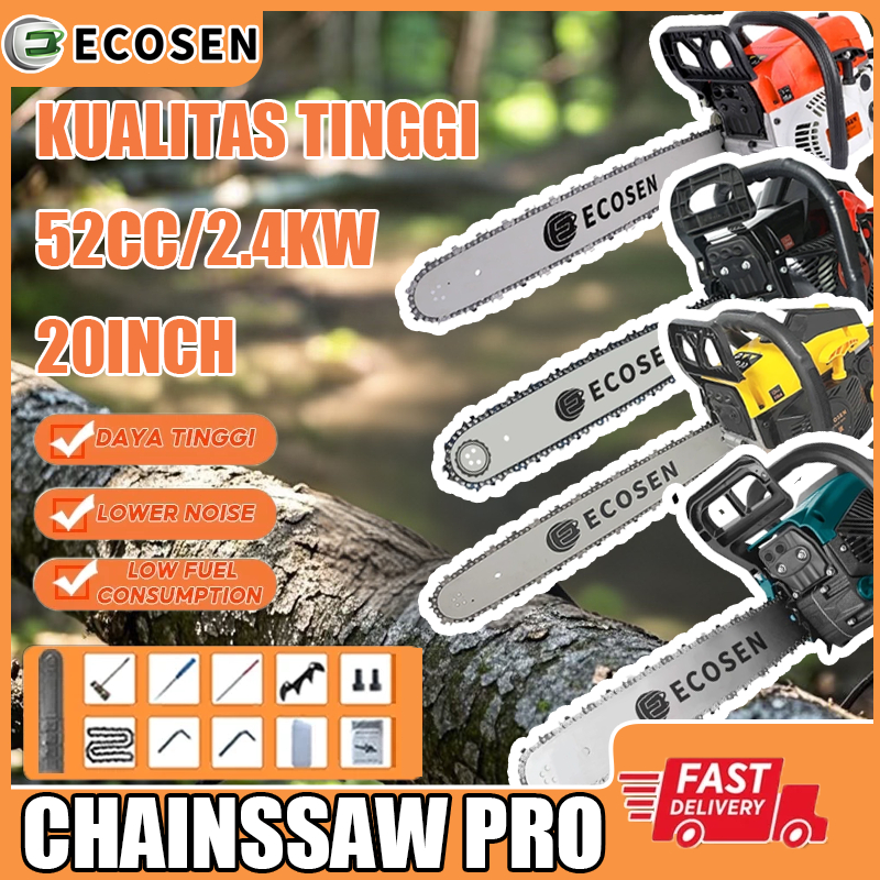 ECOSEN Mesin Potong Kayu 20/22/24inch bar Chainsaw 58CC 2Tak Gergaji Potong Kayu mesin gergaji