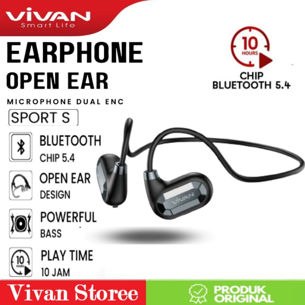 VIVAN SPORT S Headset bluetooth Open Ear OWS TWS Olahraga | Bluetooth 5.4 | Dual ENC Powerfull Bass Garansi Original Resmi