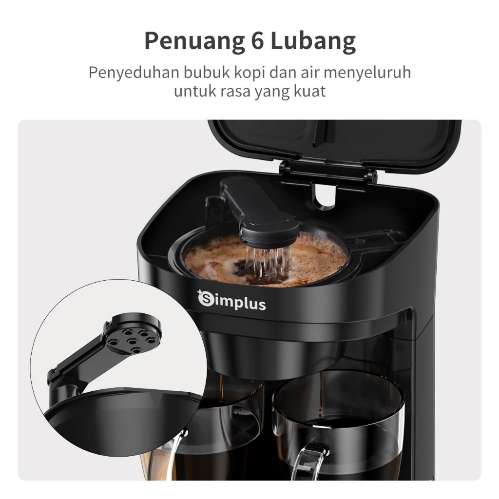 Simplus Mesin Kopi Rumahan Mesin Kopi Filter Satu Tombol Dual Cups Coffee Maker