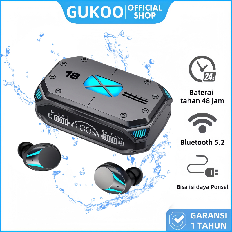 GUKOO EARPHONE HEADSET BLUETOOTH SPORT 48 JAM Anti Keringat & Air (IPX5) - CASE GAGAH KAYA ROBOT + CAS HP DARURAT Free Pouch