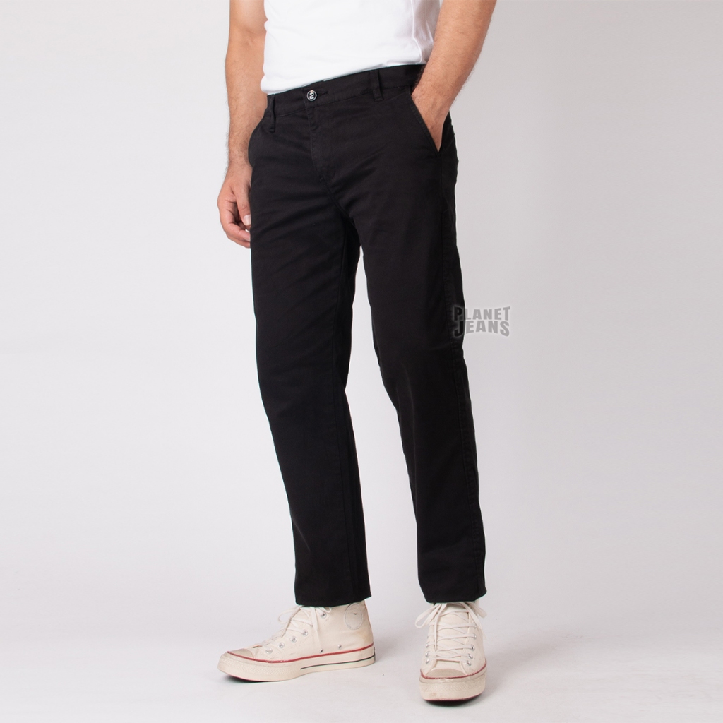 Planet Jeans - Celana Chino Pria Hitam Slim Straight Fit - Kadeo Ultimate Chino Pants Modern Slim 393