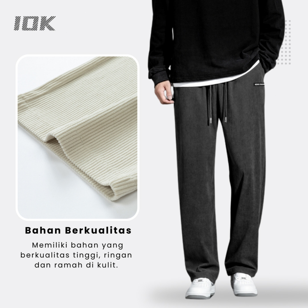 IOK Celana Panjang Corduroy Pria Celana Training Pants Casual Oversize Lembut Nyaman 300g (C103)