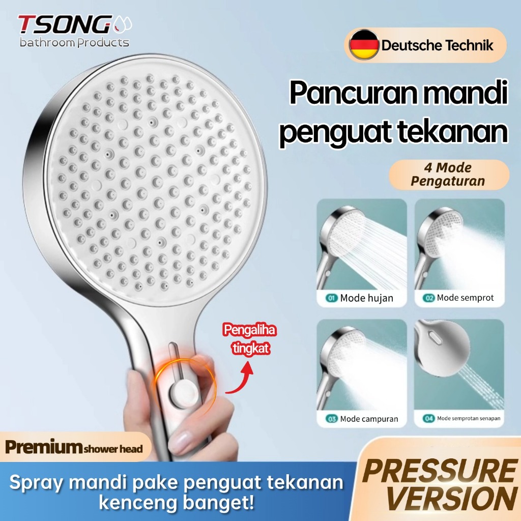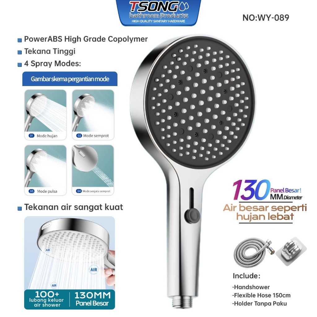 TSONG #089-B Hand shower Shower Kamar Mandi Satu Set 4 Mode Hand Shower Kepala Shower Panel Besar Tekanan Tinggi Kuat