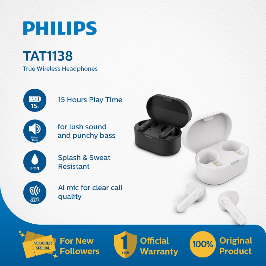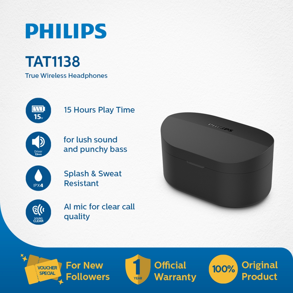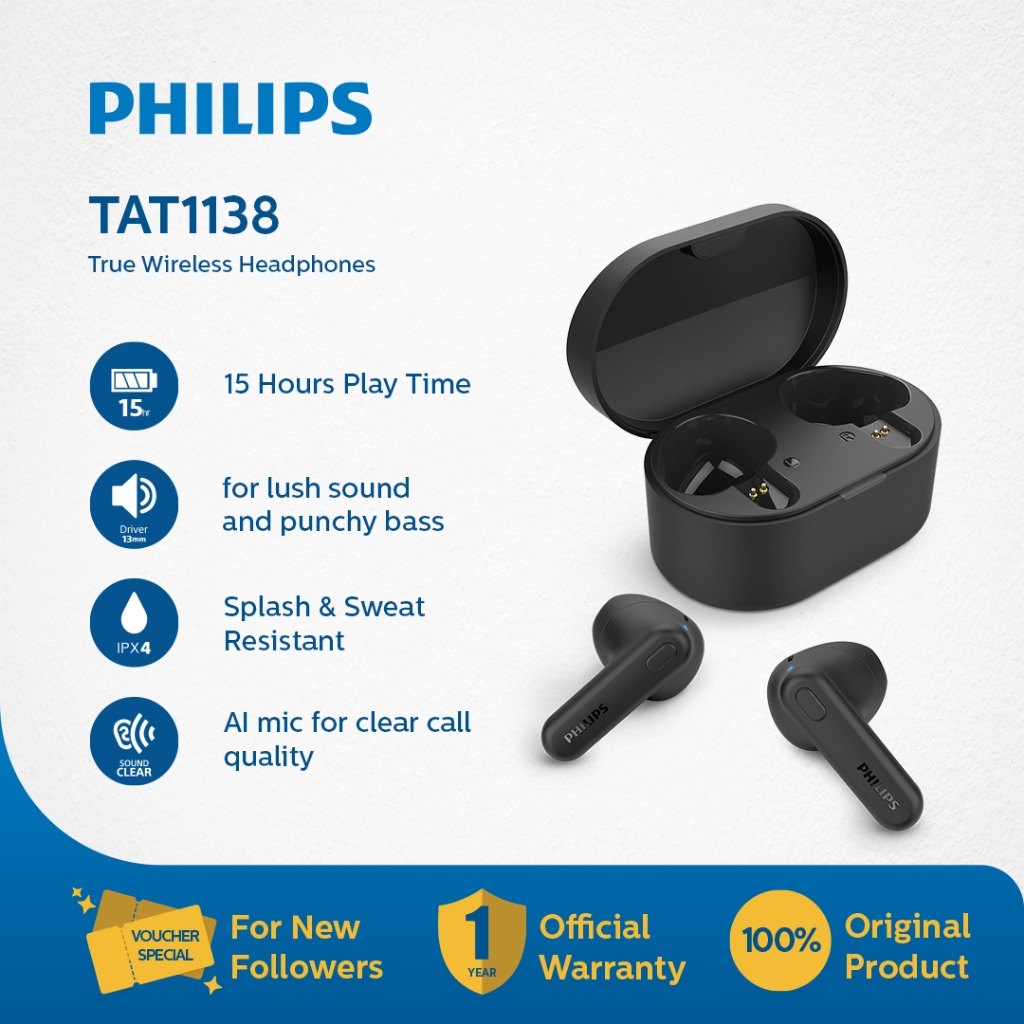 PHILIPS TAT1138 Sport True Wireless With AI Mic for Clear Calls