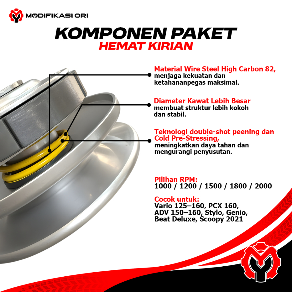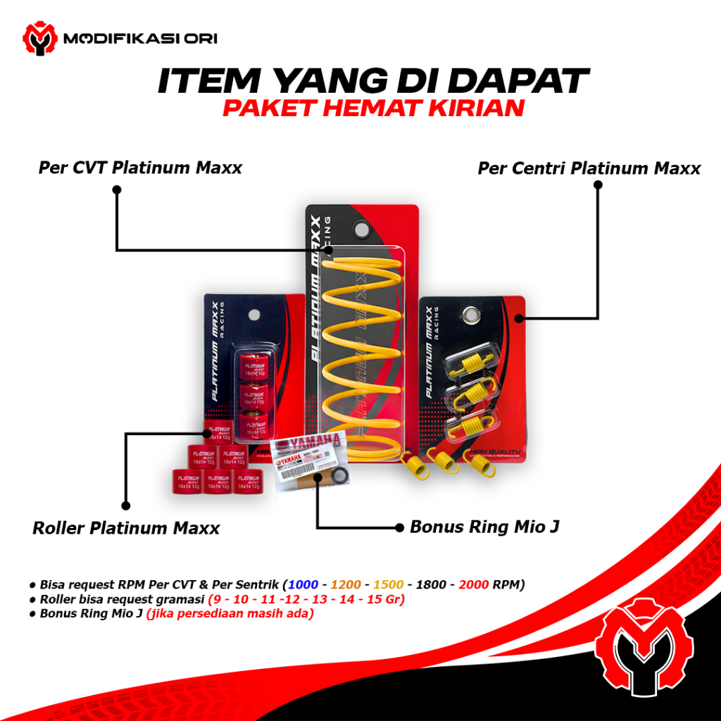 Paket Hemat Kirian Platinum Maxx Beat Genio Scoopy – Per CVT + Per Sentri + Roller + Bonus Ring Mio J - Upgrade CVT – Ak