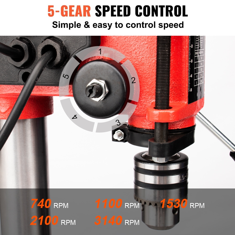 JLD ZJ4113 Mesin Bor Duduk 13MM Bench Drill Press Variable 5-Speeds Cocok Untuk Bengkel, Tasbih, DIY, Mebel Pengeboran Presisi Tinggi