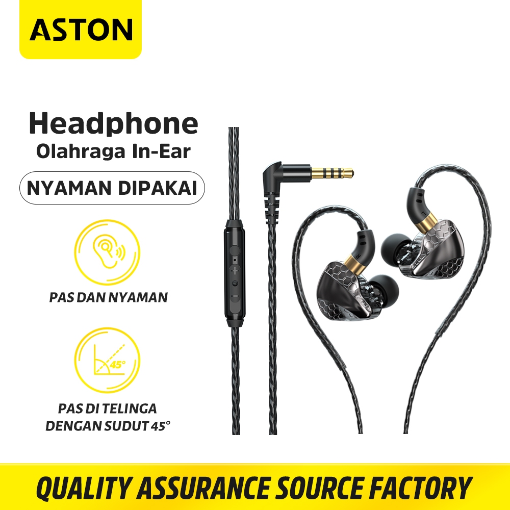 ASTON Headset Dual Dynamic HiFi Bass AT-MT120 Black In-Ear Noise Cancelling For Gaming Live Original
