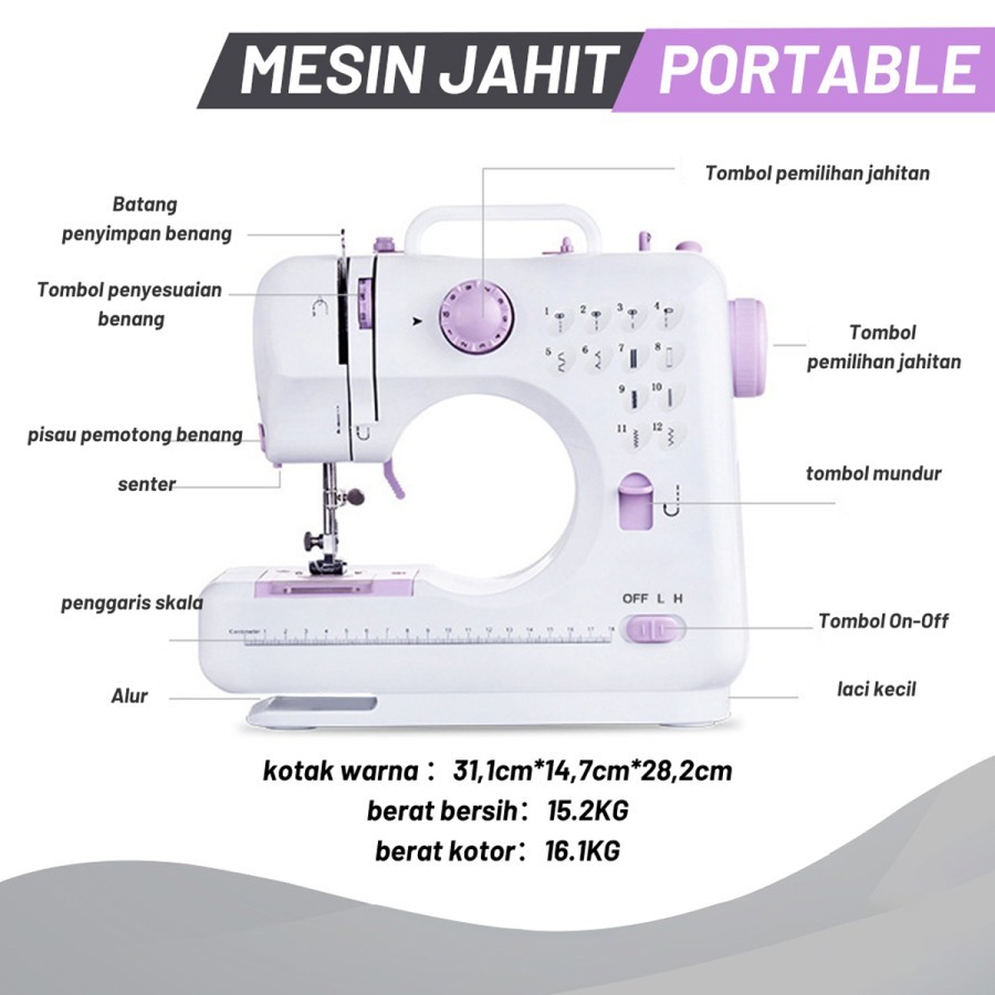 VIVANIA - D3 Mesin Jahit Mini Portabel 505A Multifungsi 12 Pola mesin Jahit Listrik