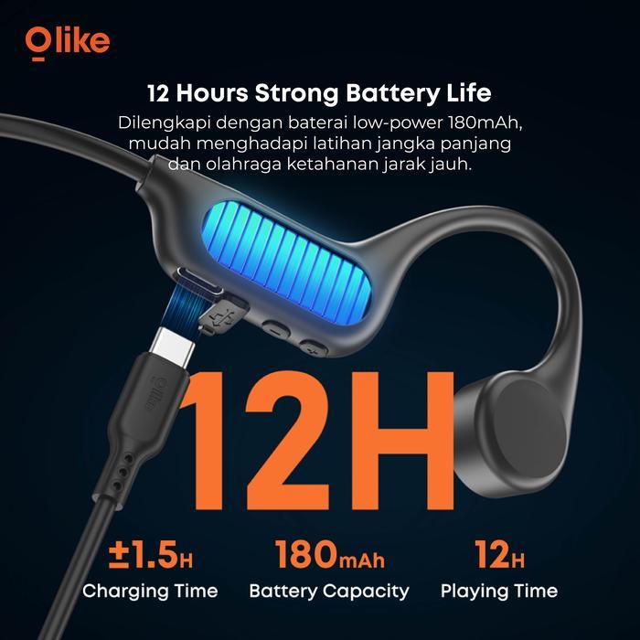 OLIKE EBC01-MP3 Earphone Bone Conduction 4GB Memori Internal up to 1000 Songs Bluetooth 5.412 Jam Play Time IPX56 Waterproof 360°