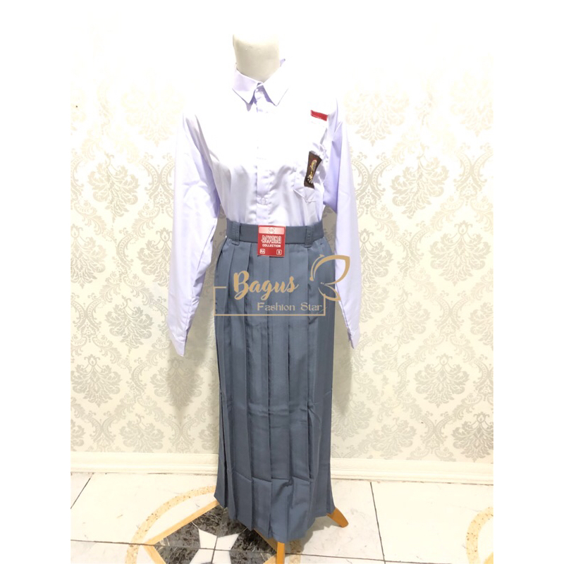 SETELAN BAJU SEKOLAH SMA/SMK PUTIH PANJANG & ROK ABU SPAN / REMPEL TERMURAH