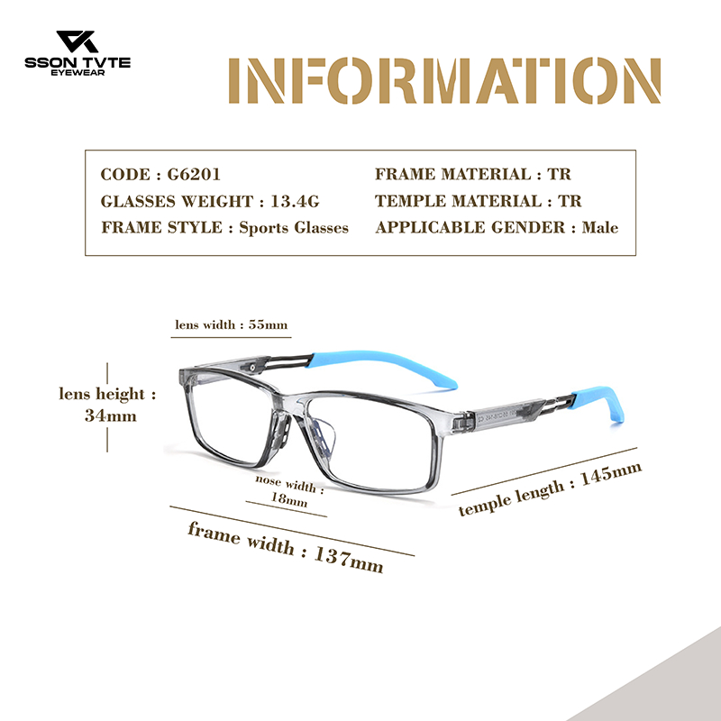 SSON TVTE Frame Kacamata Sport Lensa Minus Pria Wanita Frame Kotak TR90 G6201