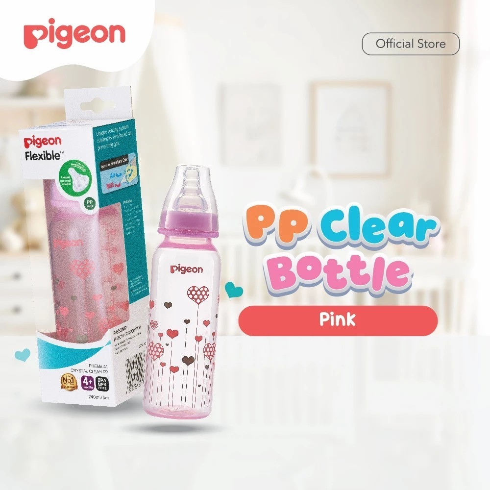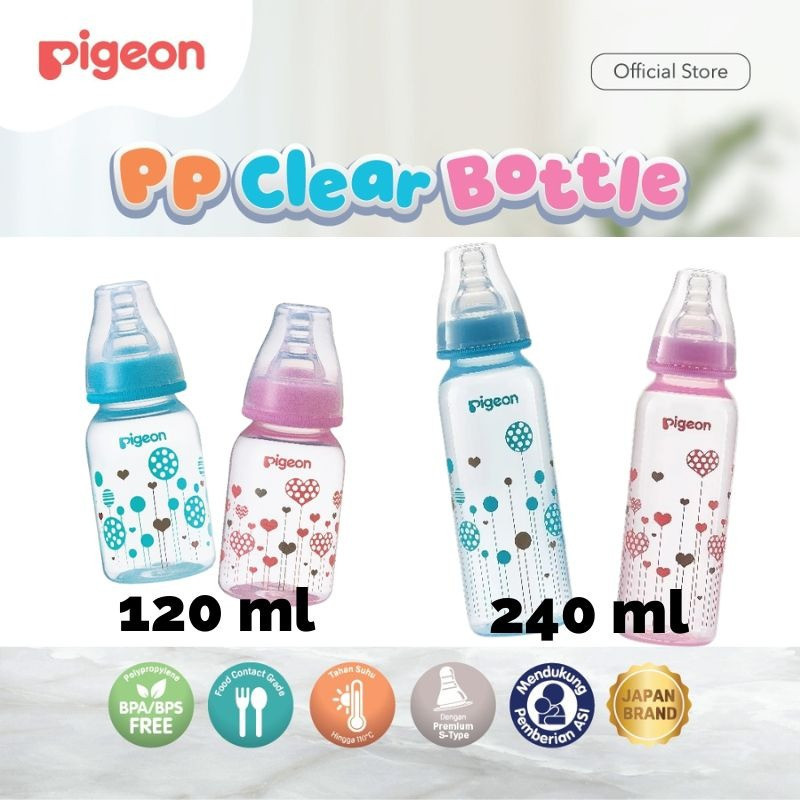 PIGEON Botol Susu PP Clear RP 120ml/240ml w/S-Type Nipple | Pilih Variasi | Botol Susu Bayi | Slim Neck | Anti Kolik | N