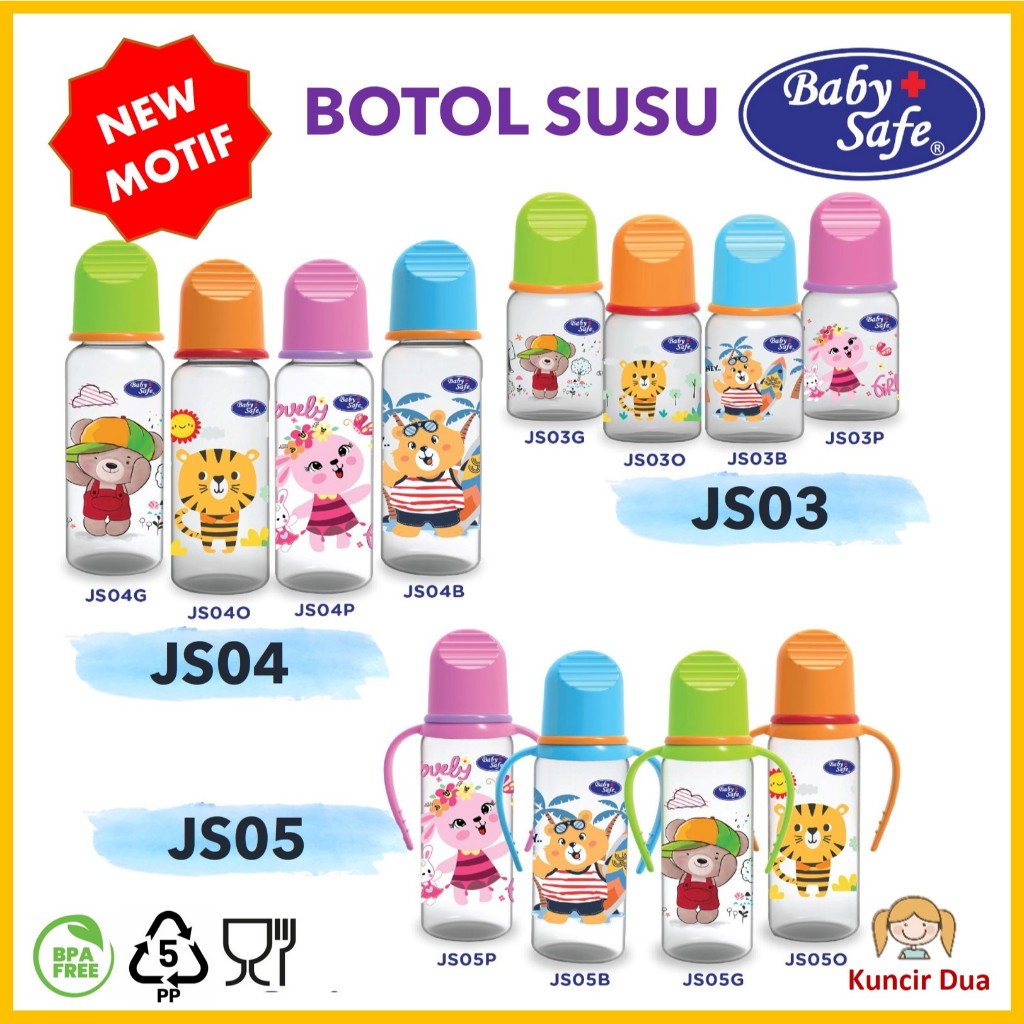 Botol Susu Baby Safe 125 ml 250 ml / Botol Dot Baby Safe JS003 JS004 JS005 Dengan Pegangan