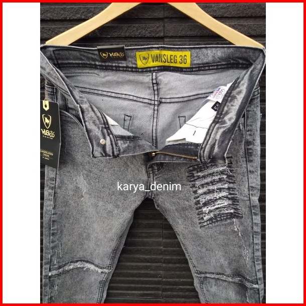 Celana Jeans Panjang Skinny Pria Abu Fashion Sobek Distroy Terkini Vlg36
