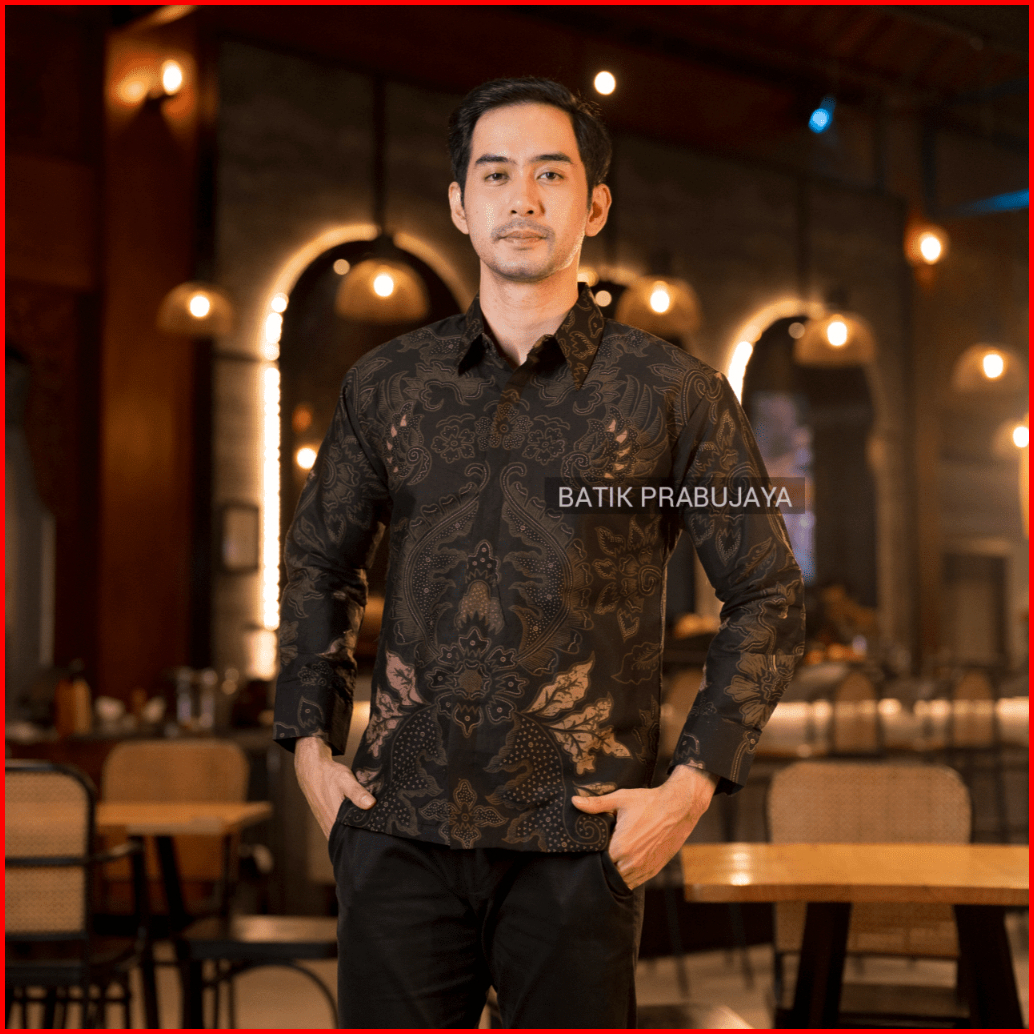 Mahkota Batik Pria Modern Premium Full Furing Lengan Panjang Solo - Baju Batik Pria Hitam Seragam Kerja Kantor