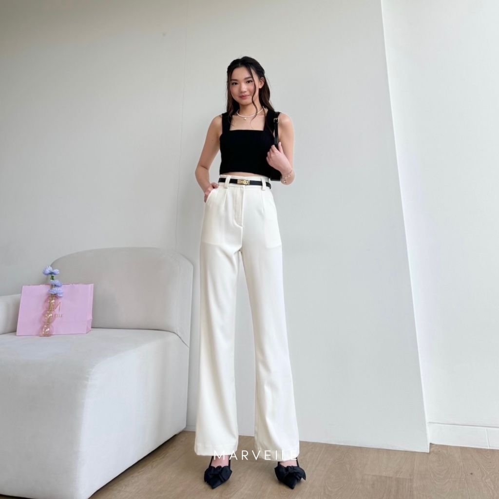 [ Marveile ] Gigi Cutbray Highwaist Pants / Cutbray Flare Pants Wanita